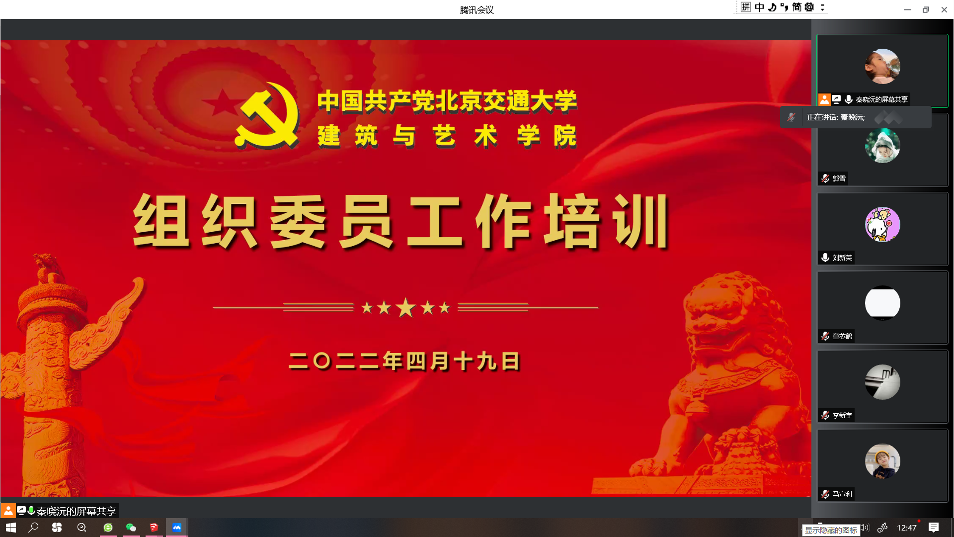 为了进一步加强和规范学院基层党建工作,4月19日中午,成人视频 党委举行各党支部组织委员工作培训会。学院党委书记秦思阳,全体教职工党支部组织委员、部分学生党支部组织委员线下参加,其余学生党支部组织委员线上参加。会议由学院党委书记秦思阳主持。