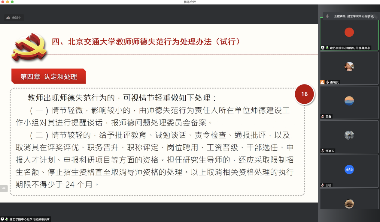 学院党委书记秦思阳带领大家系统学习了党的十八大以来习近平总书记关于教师队伍特别是教师思想政治和师德师风建设的重要论述,对《成人视频 师德建设长效机制实施办法(2019年修订)》、《成人视频 关于加强和改进新时代师德师风建设的实施方案》、《成人视频 教师师德考核办法》、《成人视频 教师师德失范行为处理办法(试行)》等学校重要制度文件进行了详细解读,结合学院工作实际,强调了当今师德师风建设的极端重要性。