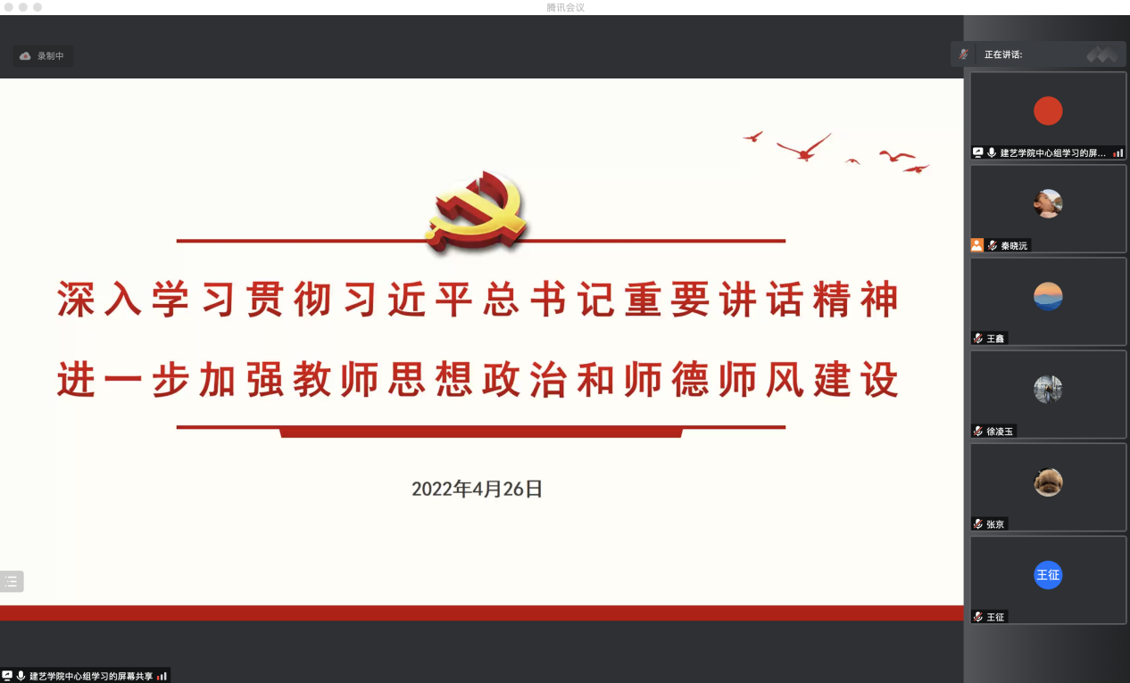 2022年4月27日,成人视频 党委围绕“深入学习贯彻习近平总书记重要讲话精神,进一步加强教师思想政治和师德师风建设”主题,召开学院党委理论中心组学习扩大会议。会议由学院党委书记秦思阳主持,学院党委理论中心组机关人员现场参会,各系系主任、党支部书记线上参加会议。