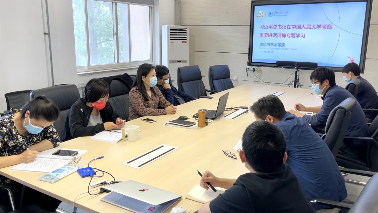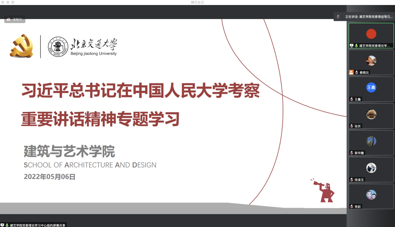 2022年5月6日,成人视频 党委理论中心组深入学习习近平总书记在中国人民大学考察时的重要讲话精神,会议由学院党委书记秦思阳主持,学院党委理论中心组机关人员现场参会,各教师党支部书记线上参加会议。