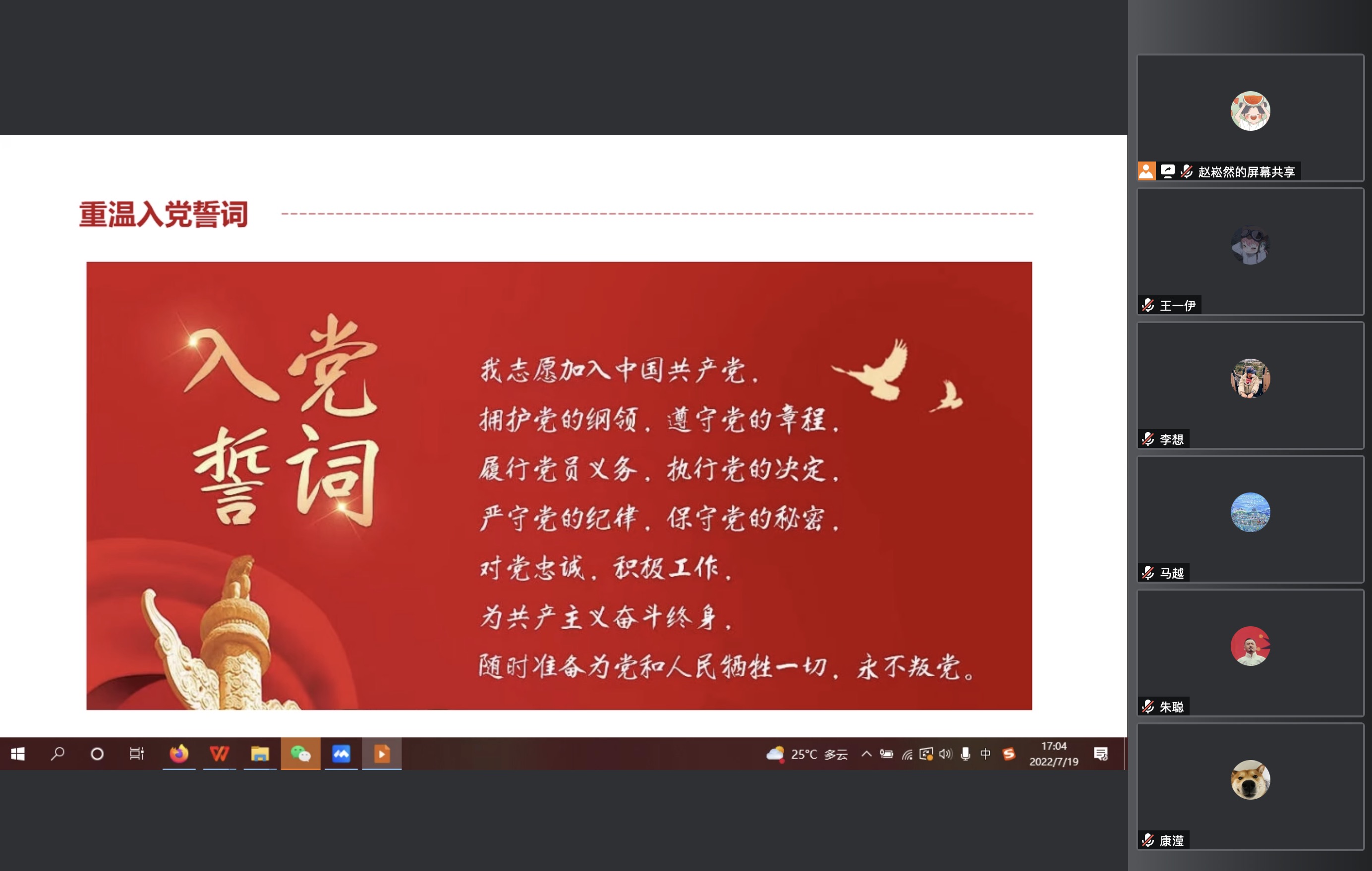支部组织全体党员一同收看“2022年高校党组织示范微党课”,随后全体党员集中重温党章、入党誓词活动,激励学生党员干部铭记入党誓言,坚定不移听党话、跟党走,做信念坚定、对党忠诚的共产党员,引导党员回忆入党初心,进一步严守党员标准,履行党员义务。同时让每个党员牢记誓词和党员身份,增强党员意识,永葆共产党人政治本色,使他们立誓做表率,践誓促发展。