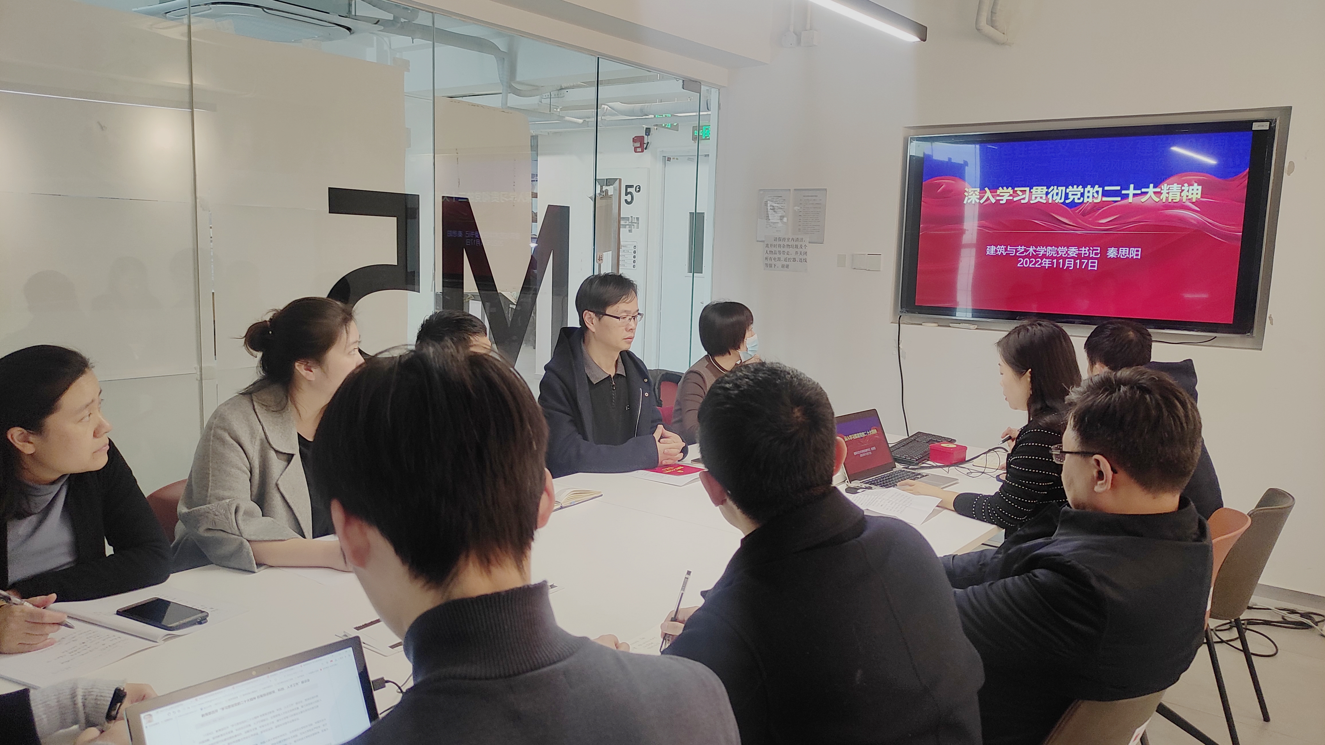 2022年11月17日,成人视频 党委理论中心组专题学习党的二十大精神,会议由学院党委书记秦思阳主持。秦思阳传达了学校党委刚刚下发的《关于认真学习宣传贯彻党的二十大精神的通知》,强调指出:学习宣传贯彻党的二十大精神,是当前和今后一个时期的首要政治任务,全体中心组成员要带头学习,要确保学深学透、入脑入心,把学习党的二十大精神转化为全院师生奋进新征程、建功新时代的强大力量。