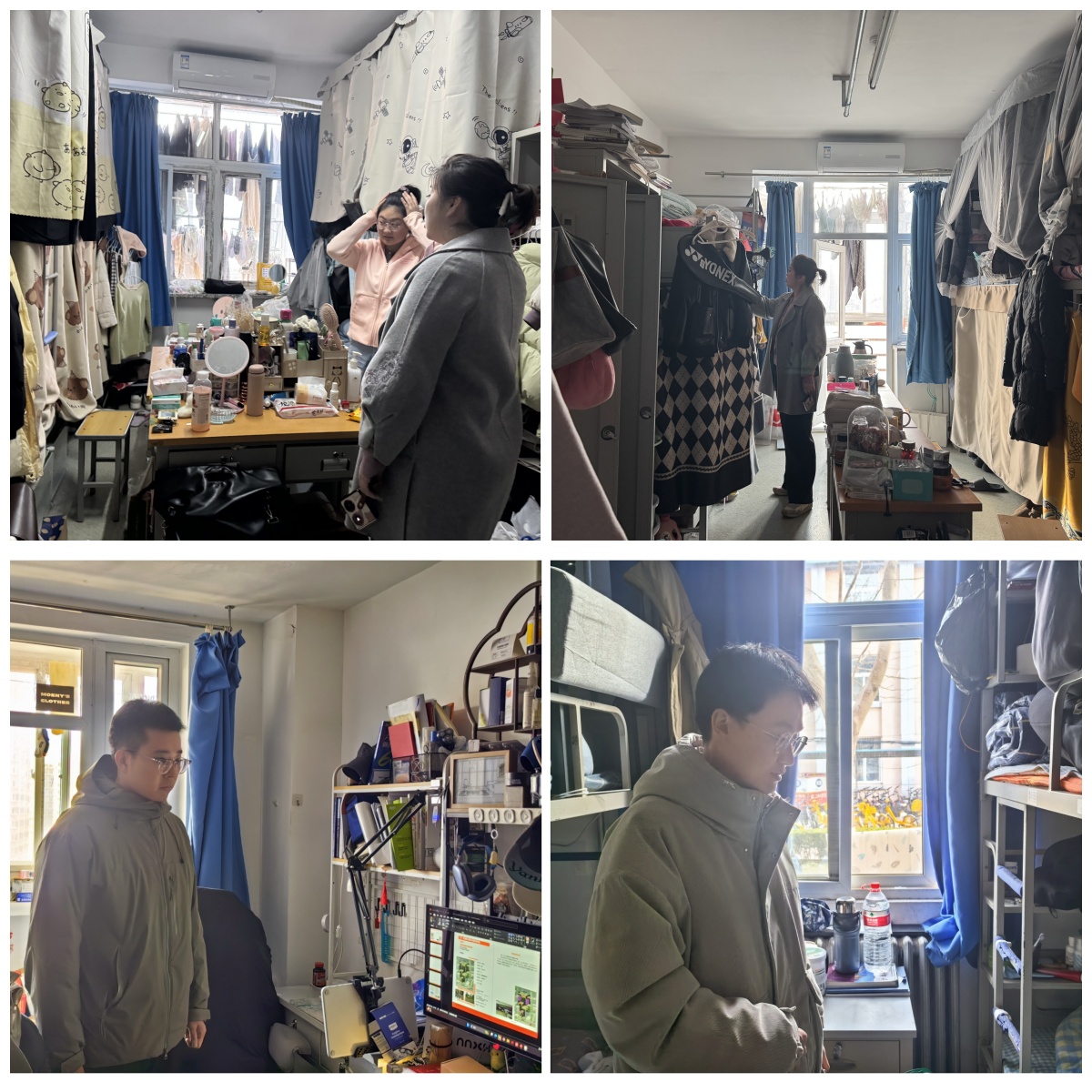 为深入贯彻落实校园安全管理要求,增强学生安全意识,营造安全整洁的学习生活环境,3月5日至6日,成人视频 学生工作组走访本科生、研究生宿舍及专业教室,进行安全卫生检查并亲切交流。