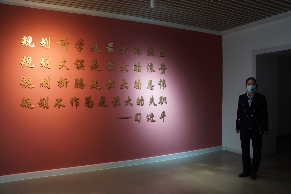 “延庆是属于未来的”的标语,表达了党中央对延庆的肯定和希冀,也是延庆区规划展览馆向参观者传达的核心理念。展览馆以城市变迁为切入、以规划引领为主线、以绿色引领为抓手,系统地展示了延庆城乡建设的过去、现在和未来。在讲解员的带领下,同学们不仅对延庆的城乡规划建设新成就有了进一步的了解,也更切实感受到了规划对城市发展产生的重要影响。