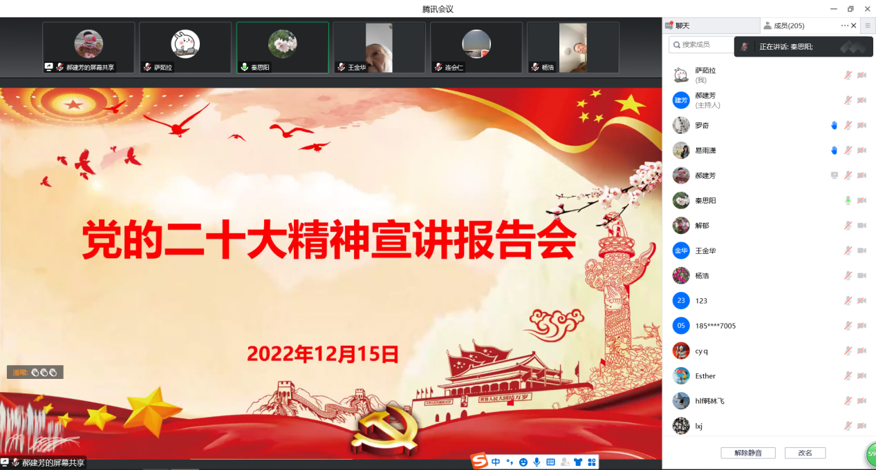 全体教职工、全体学生党员和学校离退休教师党员通过腾讯会议参加报告会。报告会由成人视频
