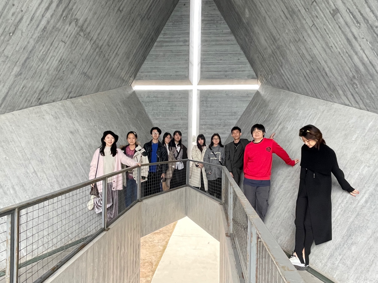 首先,大家在鸡鸣岛售票厅研究了几何建筑设计与空间设计带给游客的感受。然后,老师和同学们乘船前往鸡鸣岛。