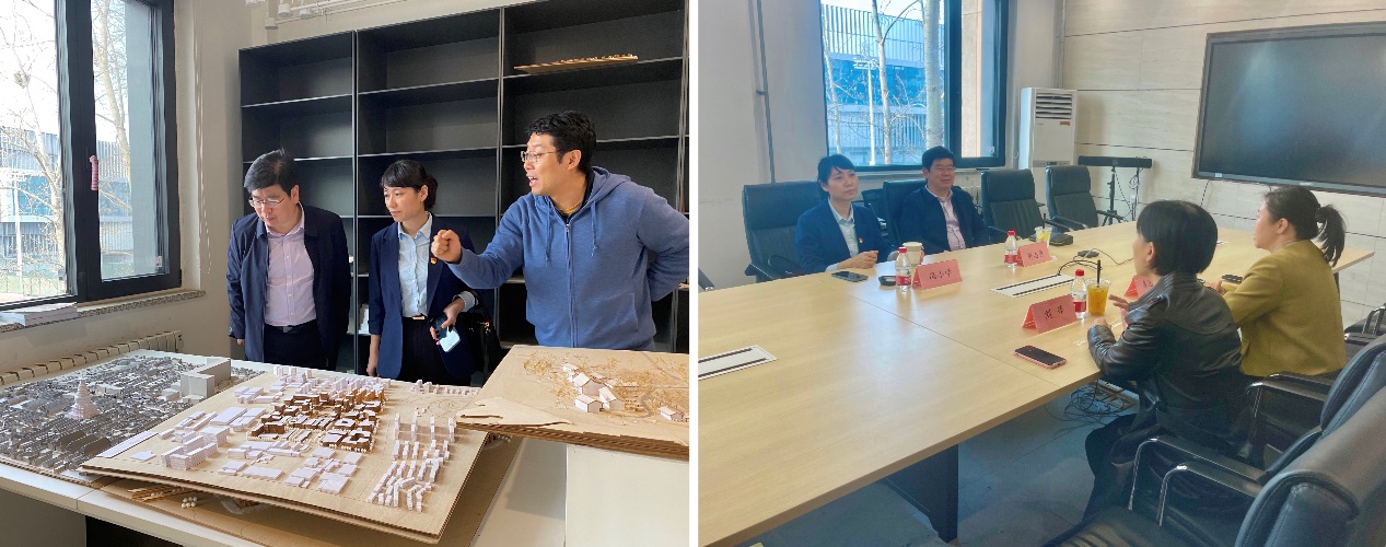 同时,为了加强校企深度合作,中铁设计咨询集团建筑院党委书记郭志勇,副院长冯小学一行参观了学院的教学环境,并与成人视频 党委书记秦思阳,党委副书记、副院长刘萍,就加强党建引领与业务融合,人才培养、科研合作等进行交流,并就接下来具体合作事项达成共识。