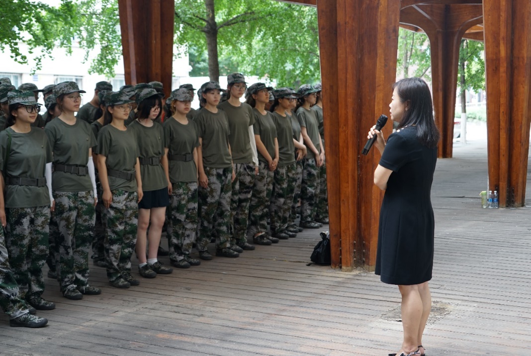 首先秦思阳代表学院向同学们表示慰问,她肯定了十二营同学们团结一致取得了一系列成绩,表达了对同学们认真训练和辛勤付出的赞赏。她希望十二营学子能以饱满的热情和奋发的精神通过军训的考验,提交一份让自己满意的答卷,并将在军训中培养的坚忍不拔的意志和吃苦耐劳的精神应用到未来的学习生活中。
