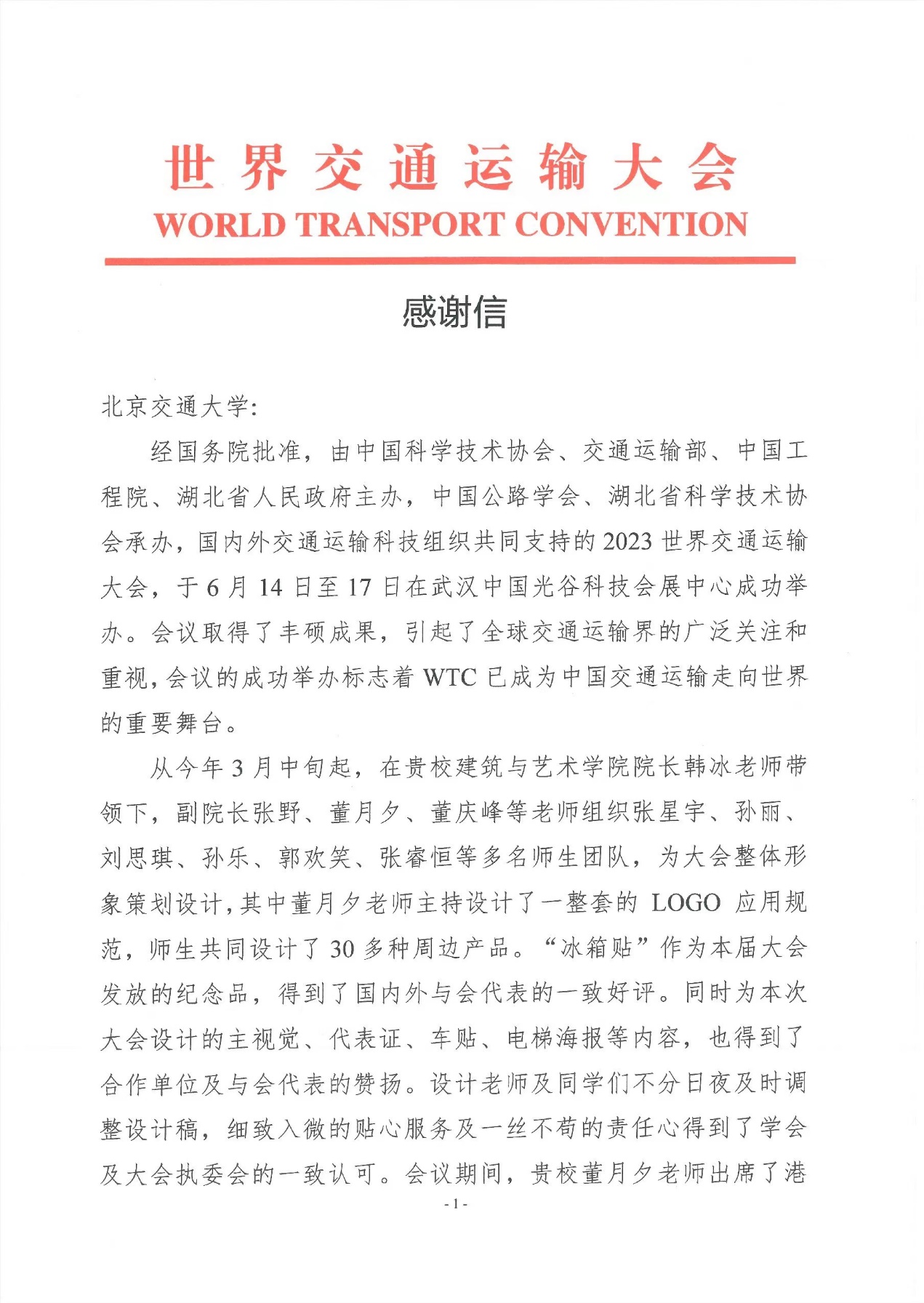 近期,学校收到来自世界交通运输大会执委会、北京市房山区委区政府的感谢信,对成人视频