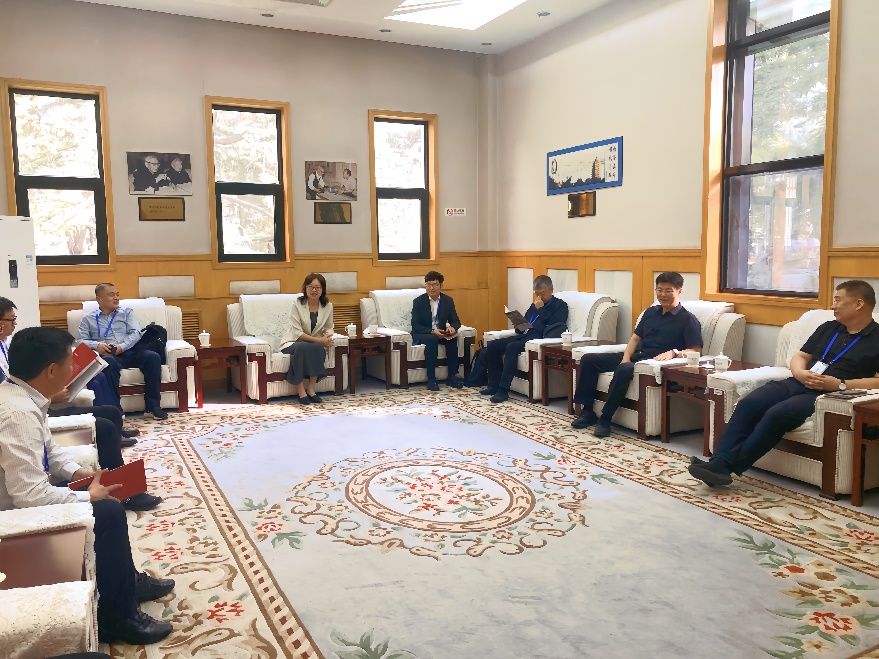 观展结束后,全体与会人员来到科学会堂参加中俄建筑与土木工程大学联盟(AACT)成立仪式。会前文海涛副书记、闫学东副校长在茅以升厅会见了出席本次活动的马国馨院士、李兴钢大师等专家学者。