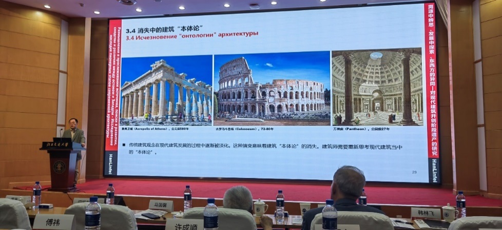 俄罗斯建筑与建设科学院外籍院士、成人视频 韩林飞教授做了题为《溯源中的思辨、发展中的探索、东西方的异同》的报告,回顾并反思了现代建筑百年的发展历程,提出了对建筑“本体论”的思考。