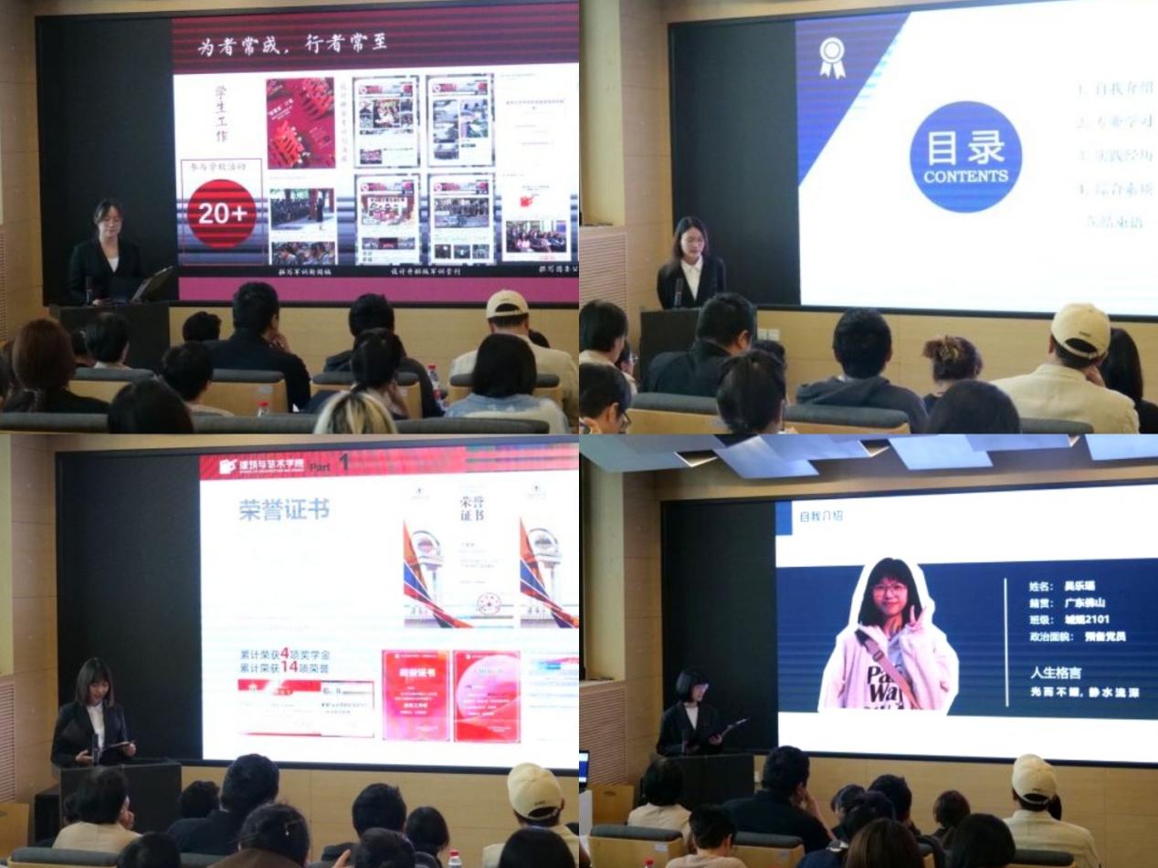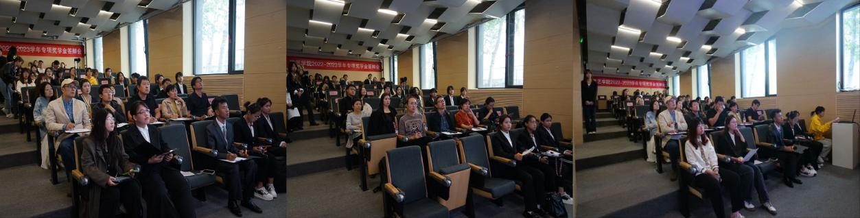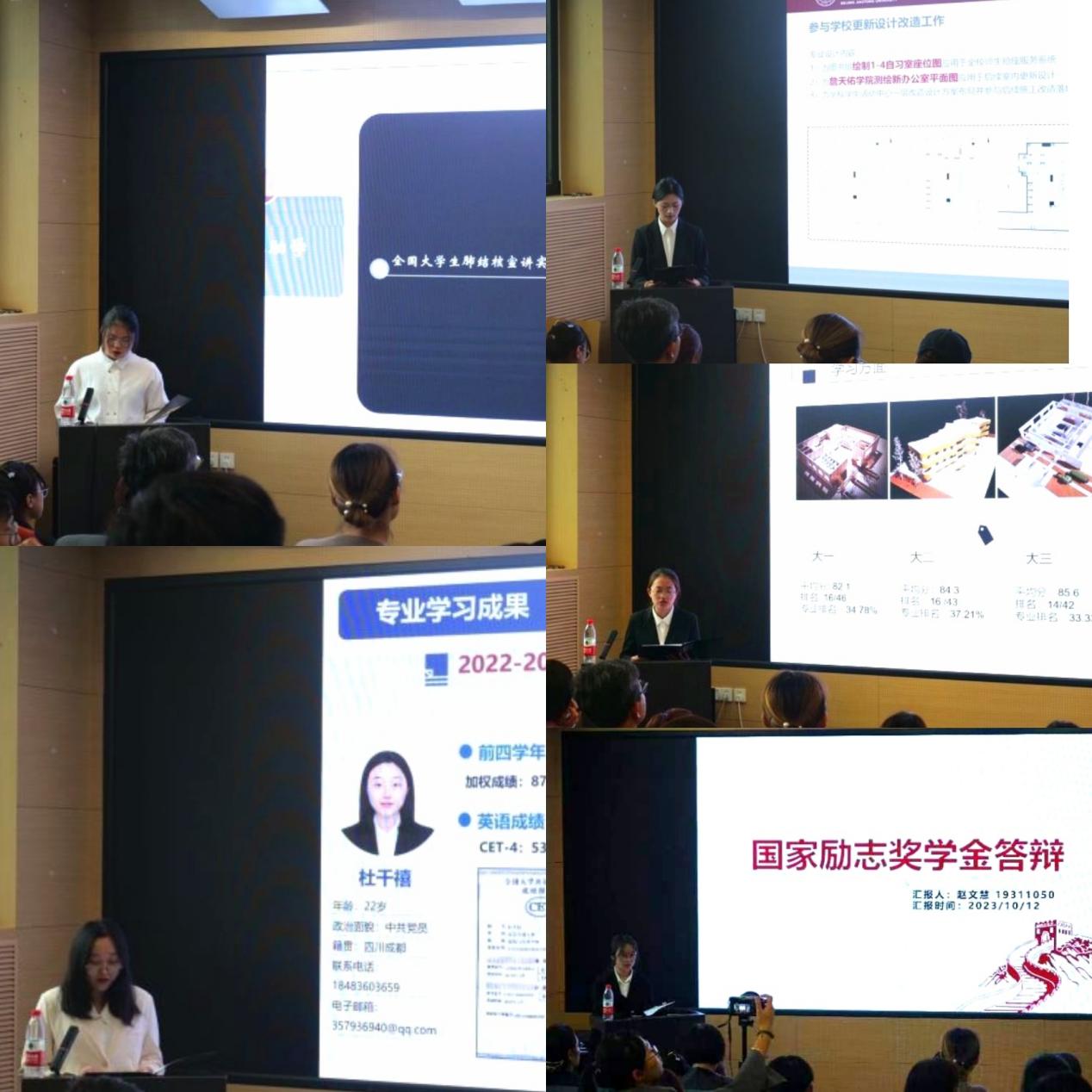 10月11日、10月12日,成人视频 在建艺楼一层报告厅分别举行2022-2023学年国家奖学金和智瑾专项奖学金、国家励志奖学金展示会。学院党委副书记刘萍,副院长张野,建筑系主任盛强、副主任曾忠忠,城乡规划系主任王鑫、副主任张纯,设计系主任王征、副主任杨梦婉,教学科科长彭烜,学生工作组全体人员,2023级学生代表担任答辩会评委。