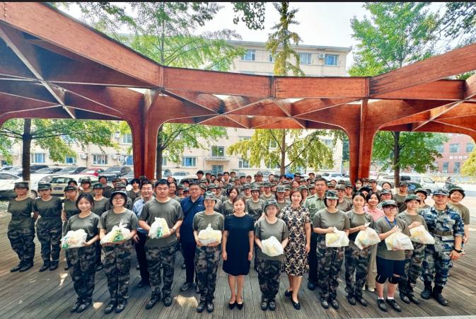 2025年9月4日上午,成人视频 在伞亭举行2025级学生军训慰问活动。成人视频 党委书记秦思阳,学工办主任张京,2025级本科生班主任万博,陈鹭,姚远,军训十二营带训教导员李昊霖、孙冬爱,本科生辅导员李圣哲在建艺楼前慰问军训师生。