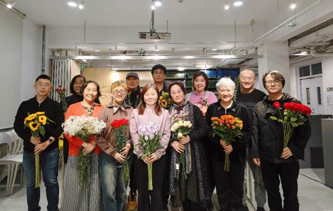座谈结束后,老教师们兴致勃勃地投入到插花与国画创作中。插花现场,花香四溢,大家巧手修剪,将一朵朵鲜花精心搭配,创作出一个个错落有致、独具匠心的花艺作品。国画案前,墨香袅袅,老教师们或挥毫泼墨,或细心勾勒,在宣纸上描绘出的山水意趣,尽显艺术修养与生活情趣。