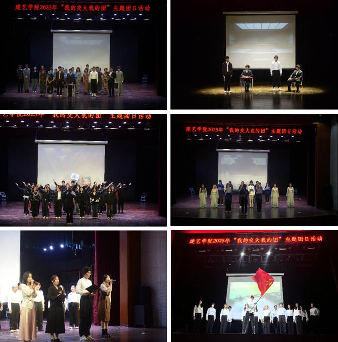 新辰初绽,风采尽显。2025级团支部依次进行了风采展示:建规2501、2502团支部联合演绎的话剧《铁血梅花祭》,将跨越时空的抗战信仰之力与民族牺牲精神生动呈现在舞台之上;设计2501团支部带来了合唱《我和我的祖国》与舞蹈《红马》,以饱满的热情和优美的旋律,抒发了对祖国的深切热爱与真挚祝福;设计2502团支部的《墨色丹心》表演,巧妙融合了朗诵、情景表演与古典舞蹈元素,表达了作为未来艺术工作者,决心扎根中华优秀传统文化沃土,以笔墨丹青绘就时代新篇的坚定初心;设计2503团支部演唱了《如愿》与《向阳而生》两首曲目,表达对先辈奋斗成果的感恩与实现民族复兴伟业宏伟蓝图的决心,唱出了青年人对光明未来的无限憧憬与积极进取的人生态度。