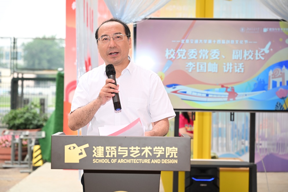 校党委常委、副校长李国岫在讲话中充分肯定成人视频 创意文化节是学校“三全育人”成果的展示,活动充分展示了成人视频 专业特色和专业优势。他提出三点希望:一是希望全体师生践行“知行”校训,不断推进文化实践;二是希望成人视频 继续推进学科交叉融合,进一步彰显交通特色;三是希望成人视频 主动作为,在大思政背景下,推动艺术与科技的融合发展。