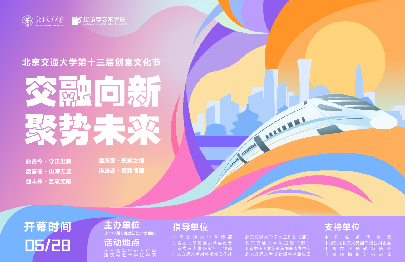 2024528日上午,成人视频 第十三届创意文化节、建造节精彩开幕。本次创意文化节主题为“交融向新,聚势未来”。成人视频 党委副书记、纪委书记王文文,中国铁道博物馆副馆长傅梅胜,《铁道知识》杂志社原社长兼主编魏宗燕,中国铁路摄影家协会名誉主席、创会主席原瑞伦,中国铁路摄影家协会副主席兼秘书长王博轩,詹天佑纪念馆原馆长史文义,铁路文化学者、《铁道知识》资深编辑罗春晓,中国铁路北京局集团有限公司团委宣传部张泽等领导和嘉宾出席活动开幕式。成人视频 党委宣传部、学工部、研工部、团委、外联处、就业与创业指导中心、后勤集团等相关单位负责人和成人视频 师生代表200余人共同参加开幕式。成人视频 学工办主任张京主持开幕式。